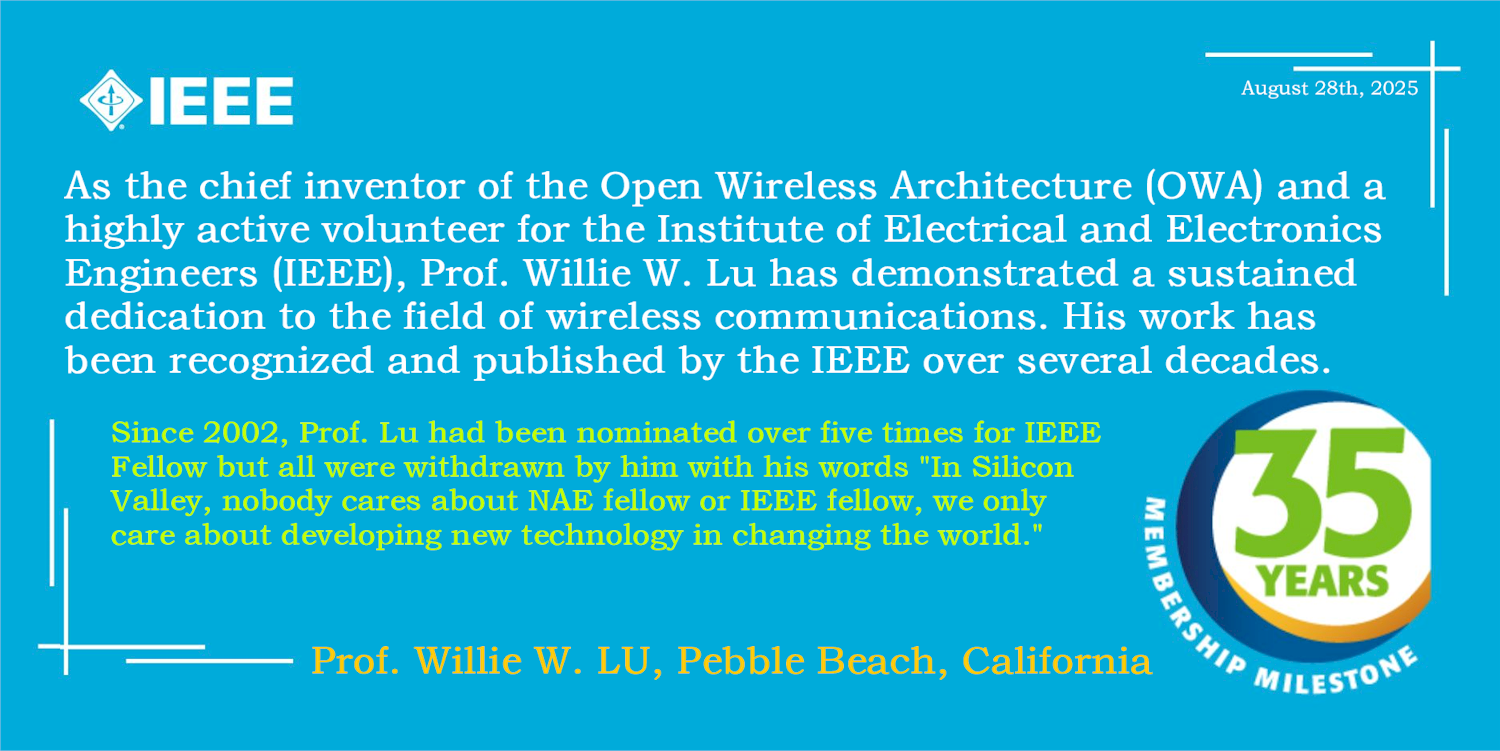 Global Recognition and Influence Prof. Lu's contributions have been widely recognized in the industry: 1) His OWA technology is often referred to as the "LU model," acknowledging his pivotal role in its development[1]. 2) He has been a key figure in driving the U.S. open mobile communication movement[1], and was member of Technological Advisory Council of U.S. FCC as well as U.S. Expert of U.S. Delegation for the OECD Mission, etc. 3) Prof. Lu has authored numerous publications on OWA and future wireless technologies, including papers in prestigious journals like IEEE Spectrum, IEEE Communications Magazine[4]. Conclusion Prof. Willie Lu's invention of Open Wireless Architecture has significantly advanced the field of wireless communications. His work has laid the foundation for more flexible, efficient, and future-proof wireless networks, positioning him as a key figure in shaping the future of wireless technology. As the industry continues to evolve towards 6G and beyond, the principles of OWA are likely to play an increasingly important role in enabling the next generation of wireless communications. 1. https://secan-lab.uni.lu/ipv6council/WillieWLuBio.html 2. https://www.linkedin.com/pulse/chapter-1-introduction-prof-lus-invention-open-wireless-lu-nxf4c 3. https://www.linkedin.com/pulse/chapter-3-critical-research-open-wireless-architecture-lu-m5mgc 4. https://ewh.ieee.org/r6/scv/sps/Lu_Model_OWA_BB.pdf ¡¡